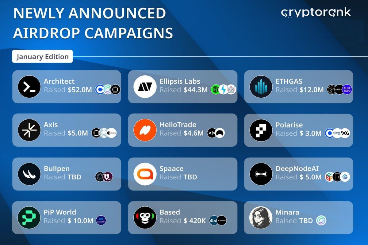 Cryptorank: недавно анонсированные крупные эйрдропы