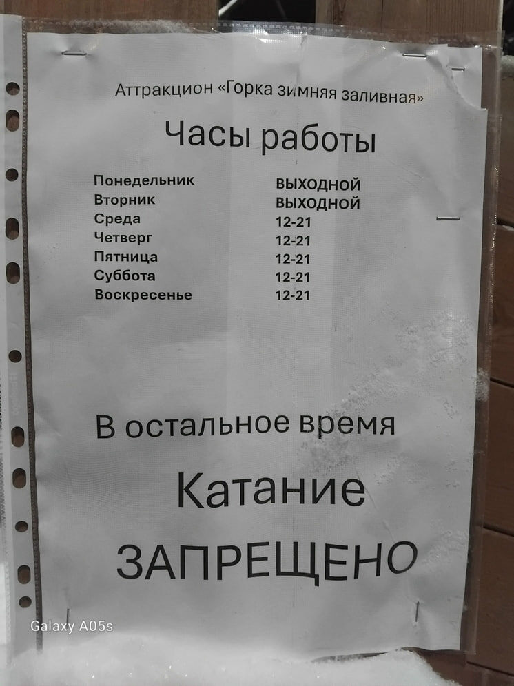 Администрация в Угличе перевела деревянную горку на пятидневку
