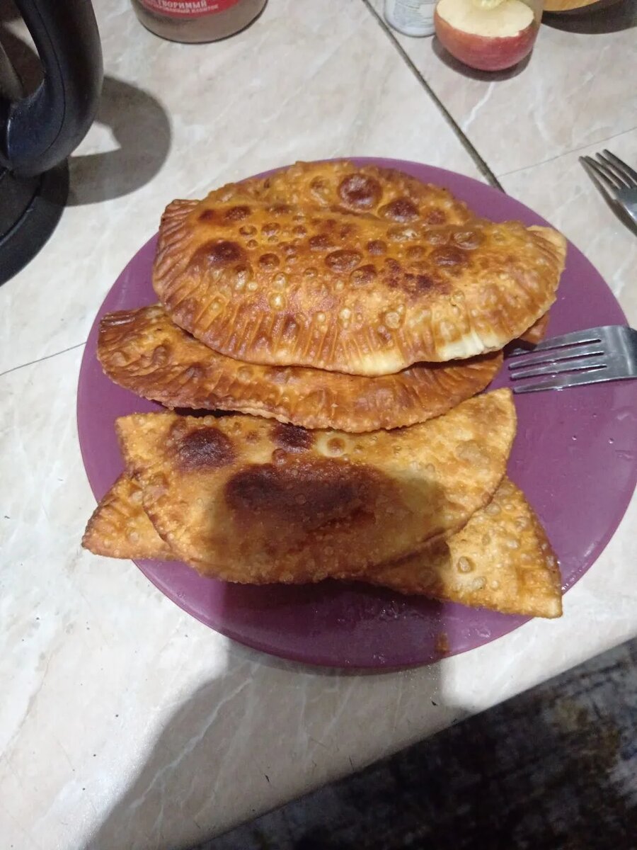 Подавайте горячие чебуреки с соусом (например, с томатным или йогуртовым) или просто со свежими овощами. Приятного аппетита!