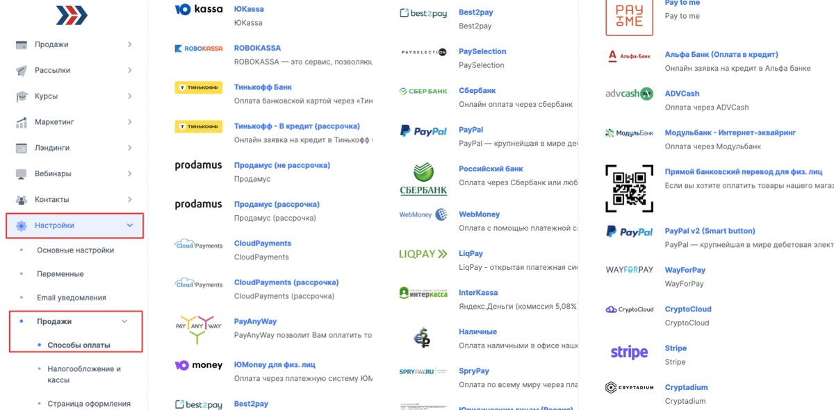 - Можно подключить форму оплаты (Tinkoff, ЮKassa и др.).