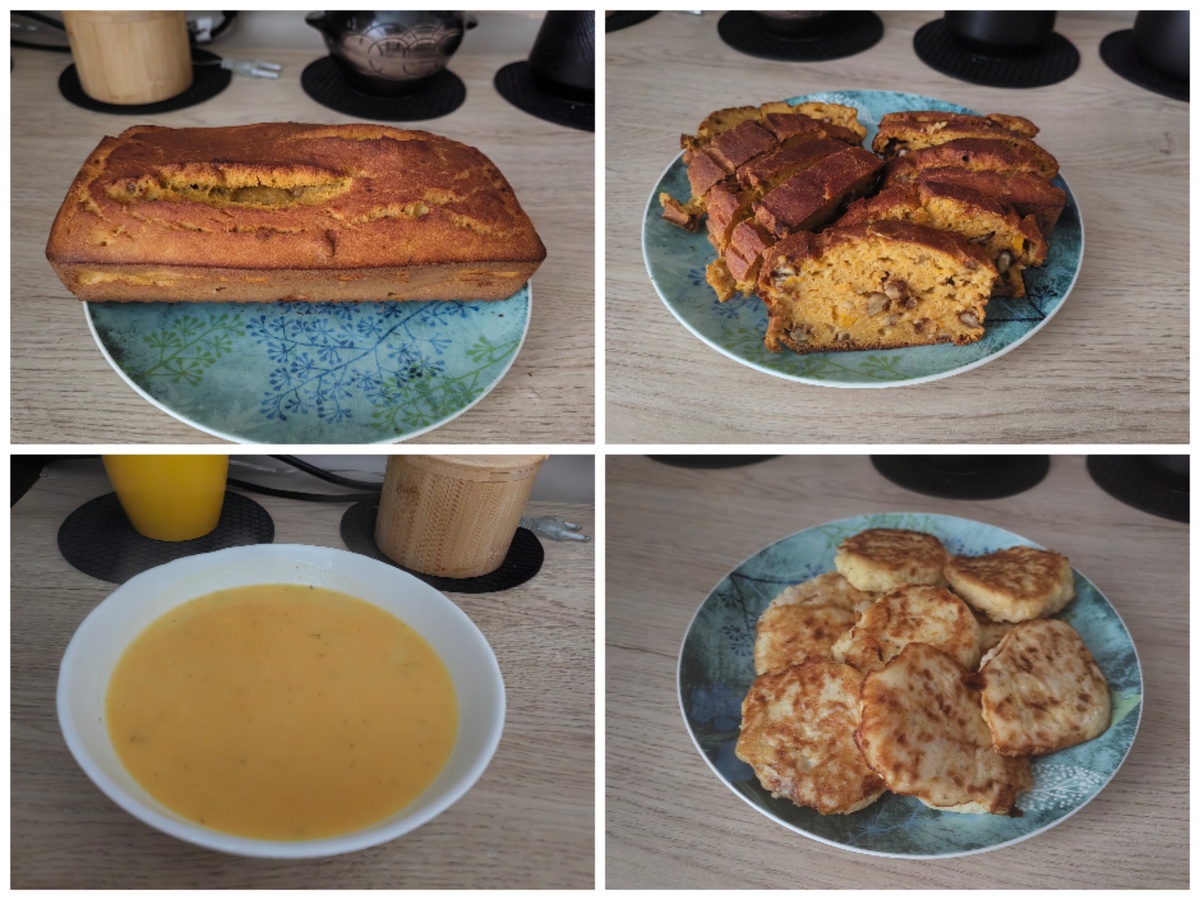 Угощала сына с девушкой своими блюдами: тыквенный суп-пюре и кекс, кабачковые оладьи. Всё понравилось.