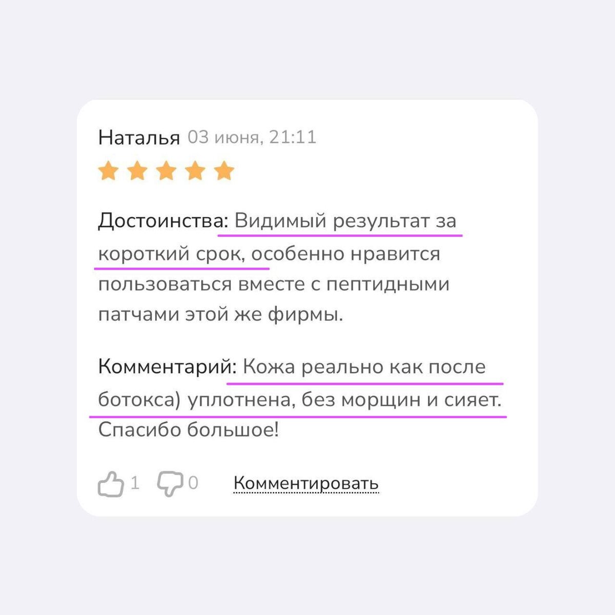 😍 Наталья, спасибо за Ваш отзыв о Blue Lifting mask Smartcosmet 🙌 Видимый результат за короткий срок достигается за счёт ламеллярной эмульсии, которая доставляет активные компоненты глубоко в кожу и запускает восстановление уже с первых применений. Что работает: - GABA расслабляет мимические мышцы - SYN-COLL® повышает плотность и упругость кожи - Рибоксил наполняет кожу энергией и усиливает сияние - Фикоцианин преобразует излучение экранов гаджетов (голубой свет) в лифтинг-эффект и уплотнение кожи Максимальный результат — при использовании вместе с пептидными гидрогелевыми патчами 👌 Они стимулируют синтез собственного коллагена, уменьшают отёчность и усиливают anti-age эффект. А при оставлении отзыва на нашем сайте smartcosmet.ru вы не только помогаете другим клиентам определиться с выбором, но и получаете дополнительные бонусы на счёт 😍 Для этого оставьте комментарий и напишите нашим менеджерам — они начислят бонусы 🫶