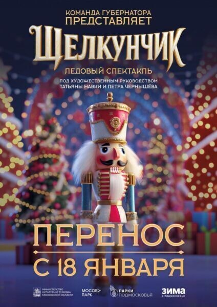 В связи с ожидаемыми крещенскими морозами 18 января принято решение перенести ледовую постановку «Щелкунчик». Как сообщил глава округа Алексей Шимко, это вынужденная мера, продиктованная заботой о безопасности и здоровье артистов, зрителей и всех сотрудников, обеспечивающих мероприятие. Новая дата проведения будет объявлена в ближайшее время. Ледовое шоу «Щелкунчик» — сказочное представление от звёзд фигурного катания Татьяны Навки и Петра Чернышева. С 9 по 25 января на катках Московской области показывают бесплатные ледовые спектакли с участием звёзд фигурного катания.
