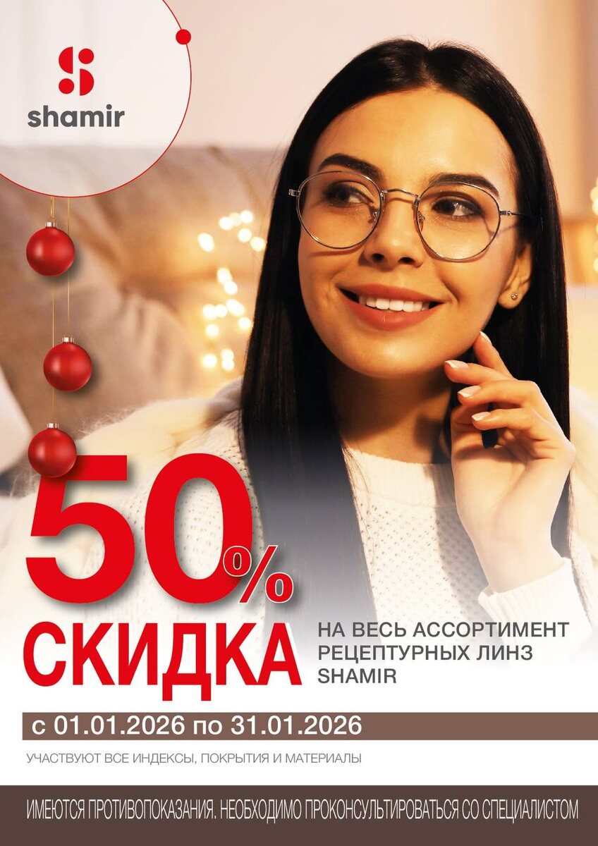 🎉 Отличная новость для тех, кто давно планировал обновить очки 👌 В январе действует скидка 50% на весь ассортимент рецептурных линз Shamir — один из лидеров мировой оптики по качеству и технологиям. В акции участвуют: • все индексы • все покрытия • все материалы 📅 Сроки акции: с 01.01.2026 по 31.01.2026 Это отличная возможность: — сделать более тонкие и лёгкие линзы — выбрать премиальные покрытия — получить максимальный комфорт для зрения по выгодной цене Подробности и подбор линз — у наших специалистов.