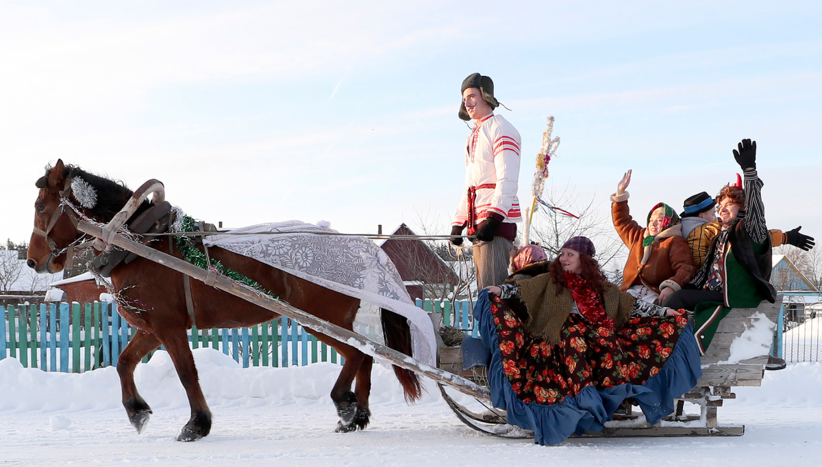 В самые лютые морозы люди наряжались и ходили, а то и ездили на лошадях с песнями по сёлам. Колядуя в богатых домах люди набирали разные угощения и после этого стучались в те дома из труб которых не валил дым, опасаясь как бы чего не случилось с хозяевами, не нужна ли им помощь. Ведь ни скорой помощи, ни телефонов у них не было...