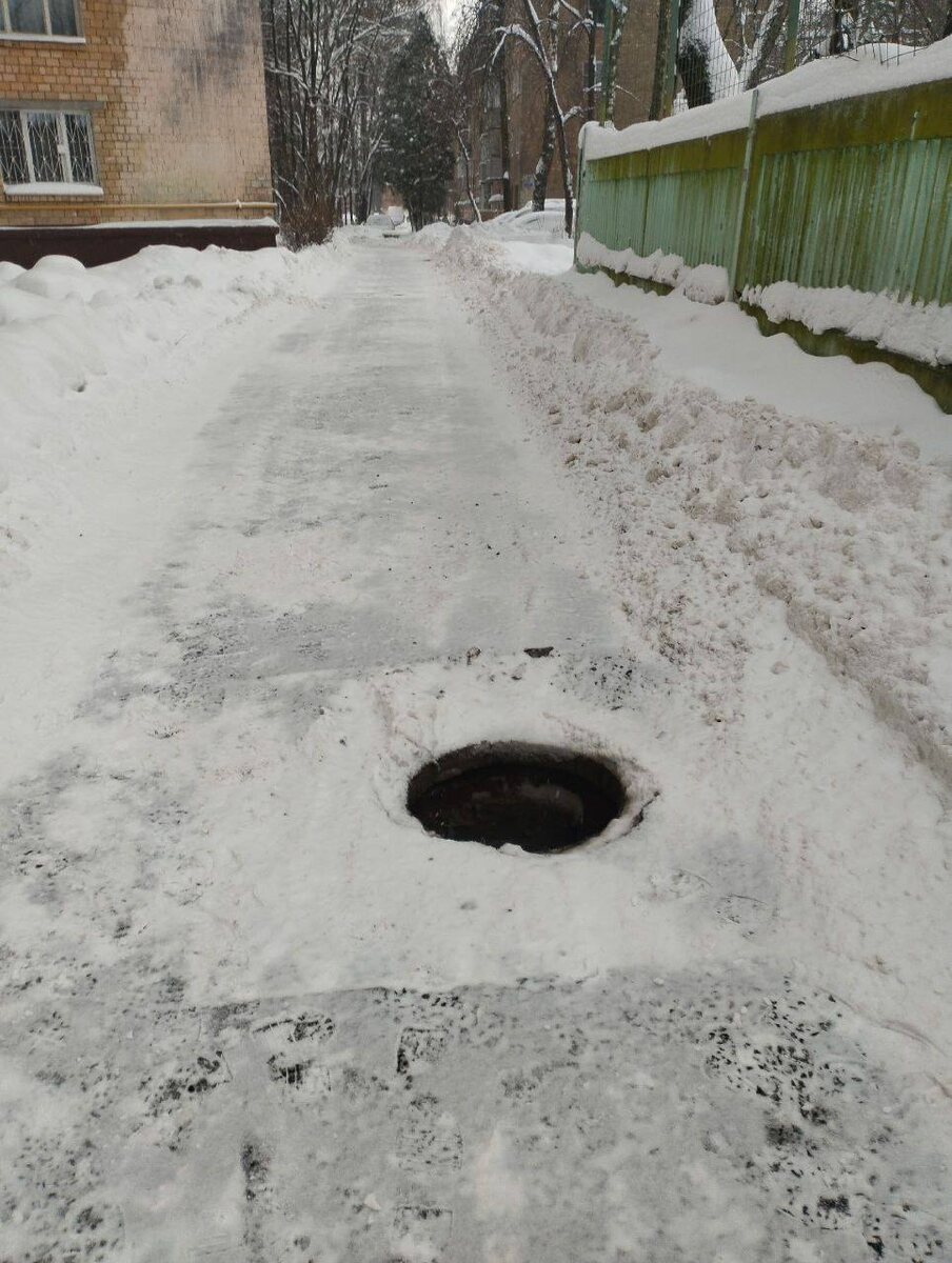 ⚡️ На дороге открытый люк без предупреждающих знаков. В темноте можно точно улететь. Фонарей здесь нет. Да и при свете дня не ожидаешь такого