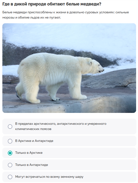 «Московский зоопарк онлайн: белые медведи». Правильные ответы викторины на сайте Активный гражданин
