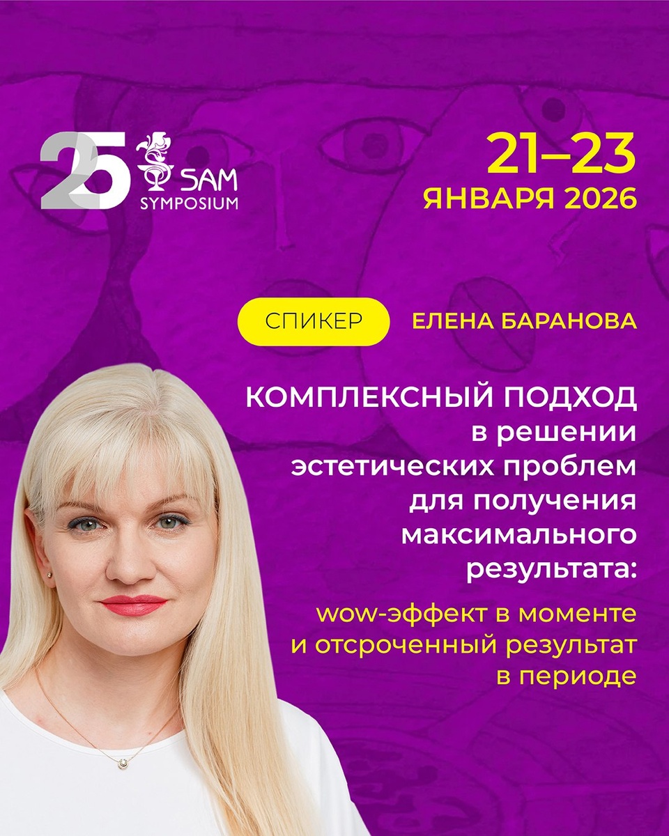 Юбилей. Точка притяжения индустрии. 21— 23 января 2026 года Москва Центр международной торговли Краснопресненская наб., 12 25-й юбилейный SAM-симпозиум Ежегодное место встречи косметологов, пластических хирургов, anti-age-специалистов, эндокринологов, кардиологов, физиотерапевтов, управленцев и учёных — все, кто формирует эстетику и медицину завтрашнего дня. 🔹 Выставочная зона и сателлитные мероприятия — бесплатно 🔹 Научная программа — по билетам Доклады 21 января: 🕒 15:20–15:50 Елена Баранова Комплексный подход в решении эстетических проблем: wow-эффект «здесь и сейчас» и прогнозируемый отсроченный результат 🕔 17:10–17:40 Иван Козлов Поток пациентов — не стратегия. Почему клинике нужна система: от разовых успехов к устойчивой модели. Реальные кейсы и типичные ошибки 🔗 Подробнее здесь