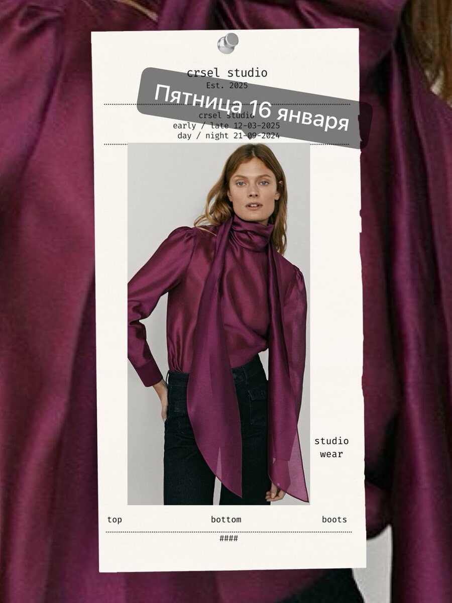 День Венеры с арканом Башня и Луной, переходящей из Стрельца в Козерога, — про резкую честность и смену опоры. Образ лучше делать сдержанным, но собранным, без романтических иллюзий. Подойдут оттенки бордового, тёмно-красного, бежевого, серого, чёрного. По вещам — чёткие линии и структура: жакет, прямые брюки, платье-футляр, плотная юбка. Ничего воздушного и «для красоты», только то, что держит форму. Детали — минимальные, металл холодный, сумка и обувь с жёсткой формой. В этот день стиль помогает не рассыпаться, а быстро перестроиться и выйти из дня с новым пониманием себя.