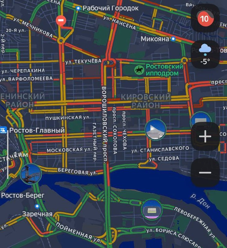 Вечером 15 января Ростов-на-Дону встал в 10-балльных пробках. По данным онлайн-сервисов, движение затруднено практически во всех районах города. Основной причиной стал снегопад.