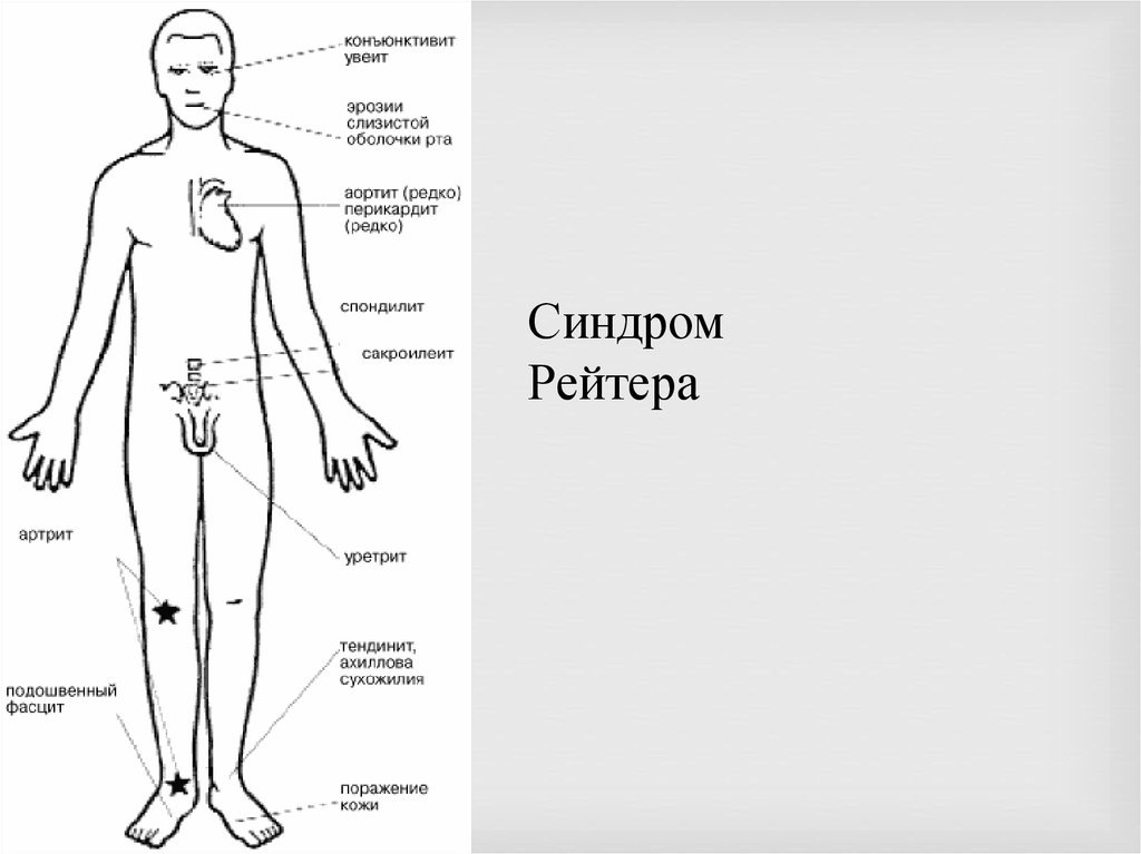 Или СИНДРОМ ФИССЕНЖЕ - ЛЕРУА - РЕТЕРА, "уретроокулосиновиальный синдром", БОЛЕЗНЬ РЕЦТЕРА.