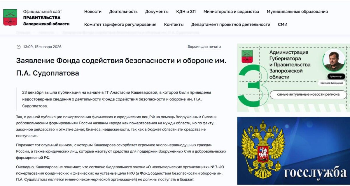 П.А. Судоплатова выступил с официальным опровержением заявлений, сделанных в телеграм-канале А. Кашеваровой 23 декабря Организация категорически отвергает обвинения в нецелевом использовании средств и так называемом «рейдерстве». В заявлении фонда подчеркивается, что вся его деятельность по сбору помощи для Вооруженных сил Российской Федерации и добровольческих формирований абсолютно законна, прозрачна и ведется в строгом соответствии с российским законодательством. Фонд акцентирует внимание на том, что его работа полностью открыта, а следственные действия в отношении сотрудников фонда никогда не проводились. С полным заявлением Фонда содействия безопасности и обороне им. П.А. Судоплатова можно ознакомиться по ссылке: https://zo.gov.ru/news/show/obrashhenie_zayavlenie_fonda_im_pa_sudoplatova ♥️Смотрите За!ТВ в Telegram ВК MAX