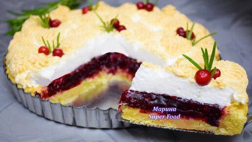 Привет, друзья! Готовлю ягодный пирог с меренгой и клюквой. Он очень ароматный и вкусный! Я использовала клюкву, можно взять любые ягоды свежие или замороженные. ПРОДУКТЫ ДЛЯ РЕЦЕПТА ВЫ НАЙДЁТЕ В КОНЦЕ ЭТОЙ СТАТЬИ. 1. Муку необходимо просеять, всыпаем в нее разрыхлитель, соль, сахар и ванильный сахар. Добавляем куриные желтки и мягкое сливочное масло комнатной температуры. 2. Перетираем руками всё в крошку, в конце добавляем сметану и замешивая тесто собираем его в шар. Выкладываем тесто в форму, равномерно распределяем по донышку и бортикам. Форма у меня диаметром 23 см. Вилкой по всему донышку делаем отверстия. Отправляем в заранее разогретую духовку до 180 градусов на 10 минут. 3. Клюкву смешиваем с корицей, крахмалом и сахаром. Перемешиваем и ставим на огонь. Как только ягоды разморозились, измельчаем их толкушкой и снова ставим на огонь. Доводим до кипения, масса хорошо загустеет. Достаём корж из духовки, выкладываем начинку и снова убираем в духовку на 15 минут. 4. Белки взбива