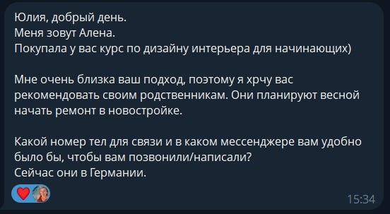 👆🏻 Я делаю небольшие, но очень полезные инфопродукты – и они работают как проба работы со мной. Устанавливают первичное доверие. Это если бы как вы бесконечно ходили по нетворкингам или без конца консультировали людей бесплатно. Но трипваер вы делаете один раз. Суть трипваера: 1. Выявить узкую потребность у потенциальных клиентов: планировка, смета, декор, декорирование и т.п. Можно еще уже: новогодний декор, планировка квартиры-студии, смета на санузел, как самостоятельно сделать красивую стену в зоне ТВ... 2. Собрать свои знания, структурировать. Сначала просто выписывать все, о чем хотели бы рассказать, потом можно это загрузить в ИИ и собрать хорошую программу. 3. Подготовить материалы для демонстрации, чек-листы, какие-то вспомогательные ссылки и т.п. 4. Все записать, можно и лучше устроить вебинар или живую встречу - когда есть люди, которым рассказываете - все идет естественно и легко. 5. Собрать все материалы в одном месте, красиво оформить. Можно на сайт, канал в телеграм
