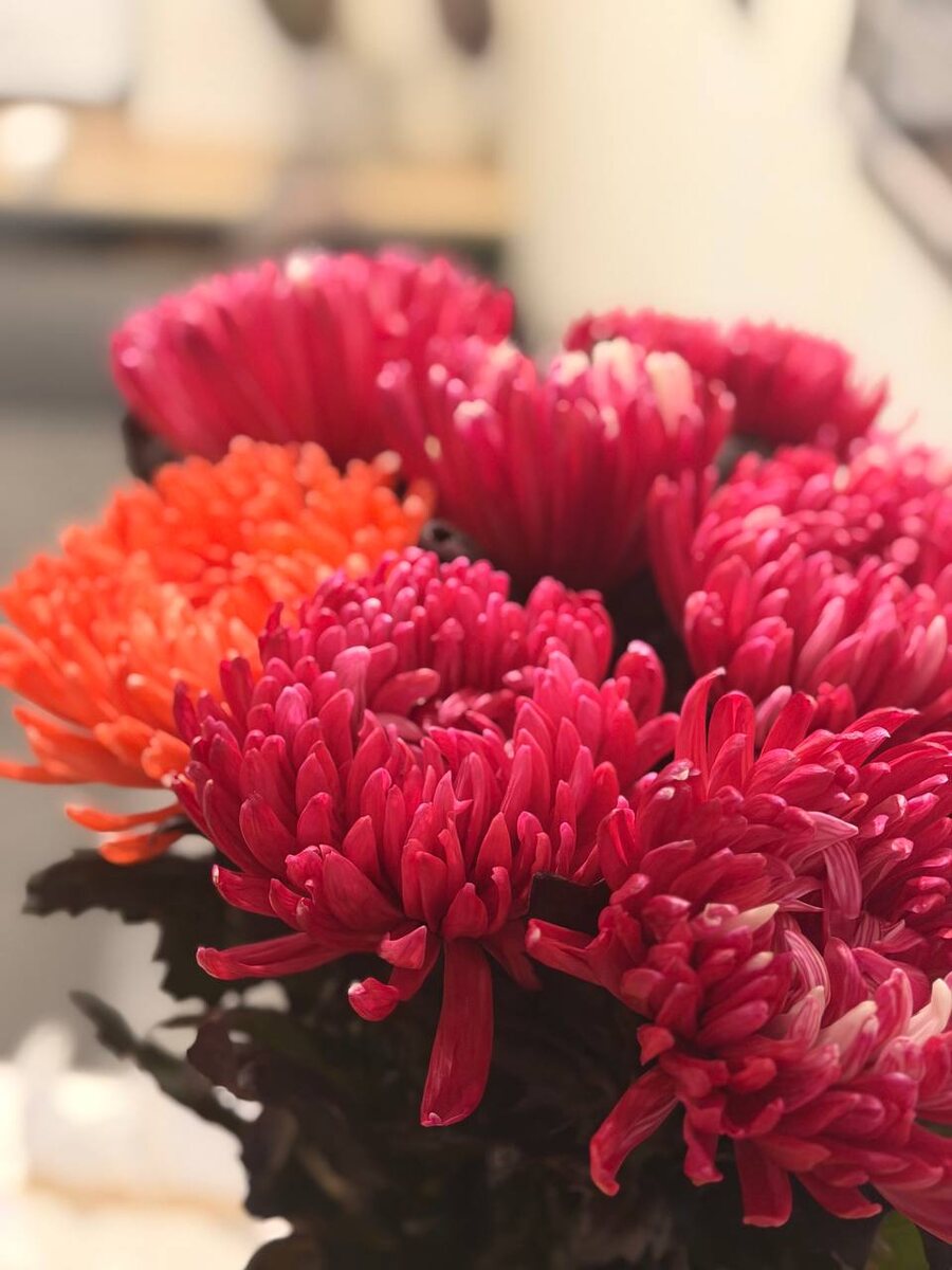 Сначала обычные, потом кустовые. Чуть позже ты замечаешь и другие цветы, которыми раньше не восхищалась: эустомы, альстромерии, гартензии, гипсофила, ромашки, гвоздики и, наконец, хризантемы… Сначала ты находишь японскую графику с изображением цветка, затем читаешь о Хризантеме в книге «ботаника в искусстве», купленной в Эрмитаже, а потом, в какой-то из вечеров, твой муж вернется домой с букетом тех самых хризантем, которых ты еще совсем не знаешь, но уже очень сильно любишь🌟 Отрывок из книги «Ботаника в искусстве» Родина хризантемы - Китай. Древние легенды утверждали, что из сока хризантем можно получить чудодейственный эликсир, способный продлить жизнь и даже молодость. Но только если цветы сорвёт человек достойный, с чистым сердцем и добрыми намерениями! С незапамятных времён хризантемы культивируют и в Японии. Здесь хризантема стала символом императорской власти. Она изображалась на одеждах и оружии императора, на национальном флаге. Цветок и солнце обозначаются одним иероглифом: