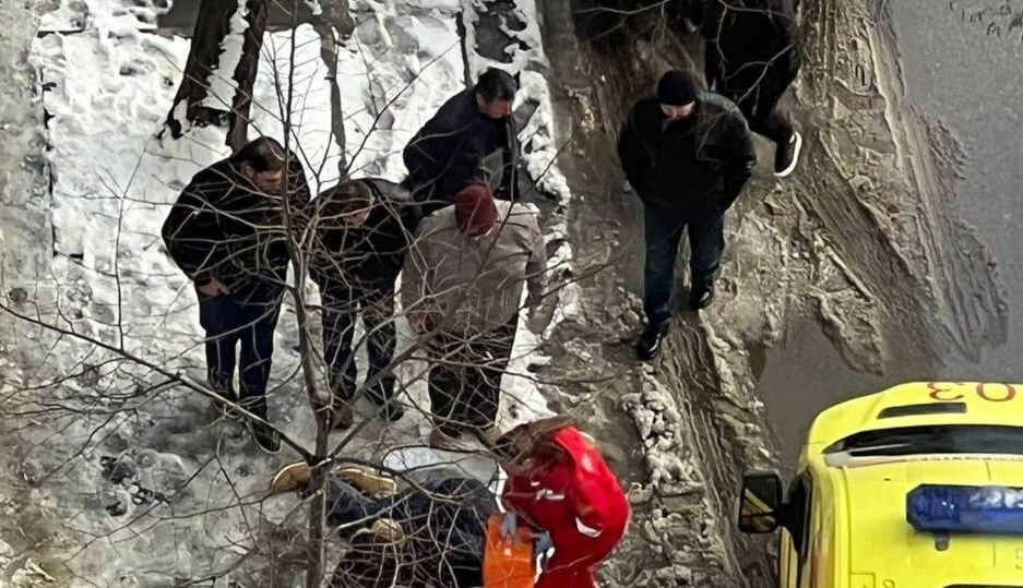 Сосулька упала на голову прохожему на улице Комсомольской в Краснодаре