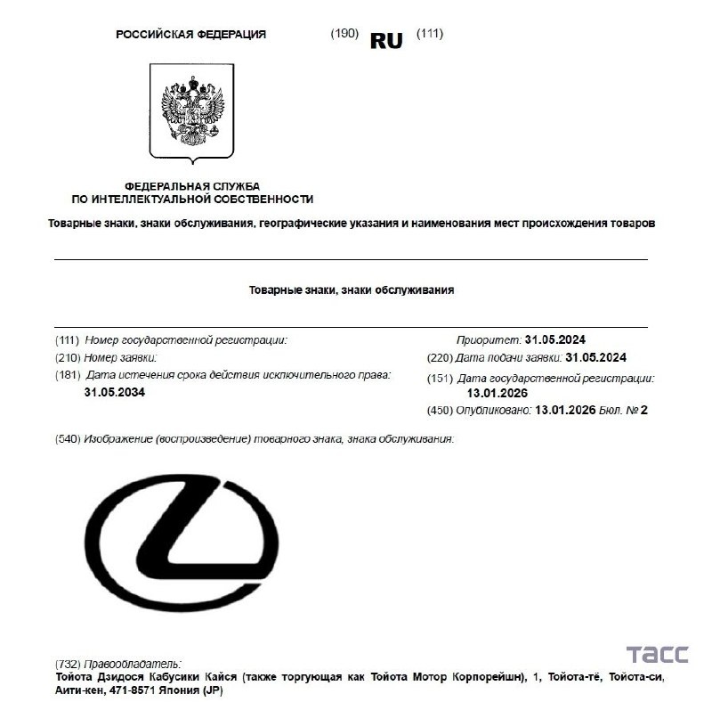 Toyota и Kia, прекратившие продажи авто в России, зарегистрировали новые товарные знаки в РФ, следует из данных Роспатента