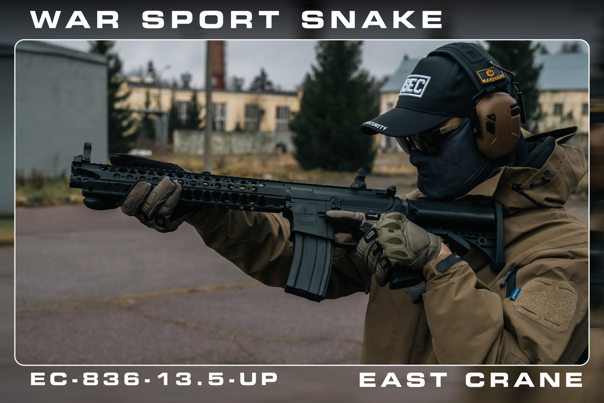 Если на полигоне у каждого второго игрока вы видите реплики в стиле Salient Arms или Strike Industries, и глаз уже «замылился», то у нас есть отличная новость. Сегодня на обзоре свежий глоток воздуха в мире AR-15 платформ — East Crane LVOA-C SNAKE в легендарном обвесе от War Sport Industries. Это не просто очередной привод, это стиль и агрессия в одном корпусе. Давайте разберем, почему на него стоит обратить внимание. Главная фишка этой модели — уникальное цевье. Оно не просто облегченное, оно формирует характер привода. East Crane постарались над внешкой. Здесь вы найдете: Полноценный интерфейс Пикатинни для ваших прицелов и фонарей. Удобный телескопический приклад типа VLTOR — классика удобства. Под «капотом» у змеи все надежно: Здесь кроется особенность конструкции LVOA. Резьба ствола классическая (14 мм, отрицательная), но она утоплена вглубь цевья. Это значит, что накрутить толстый глушитель или массивный пламегаситель будет сложно — они просто не влезут в узкий профиль «пасти». Н