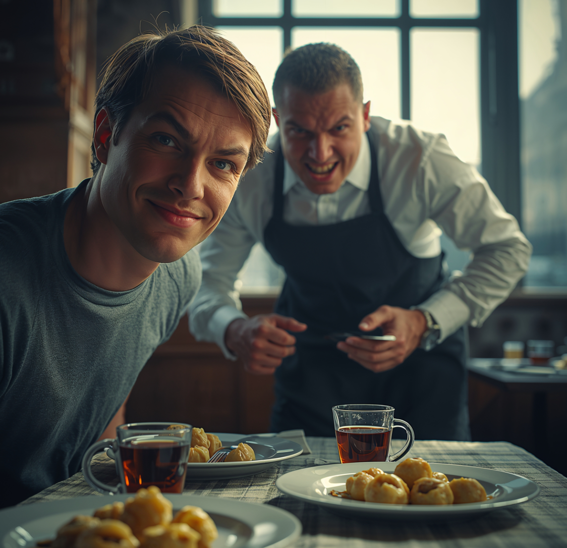 Андрей шел по вечерней набережной, глядя на темную воду реки. Желудок предательски заурчал — к своему медальону из телятины он так и не притронулся. На углу светилась вывеска круглосуточной пекарни. Оттуда пахло ванилью и свежим хлебом — простым, понятным запахом уюта.