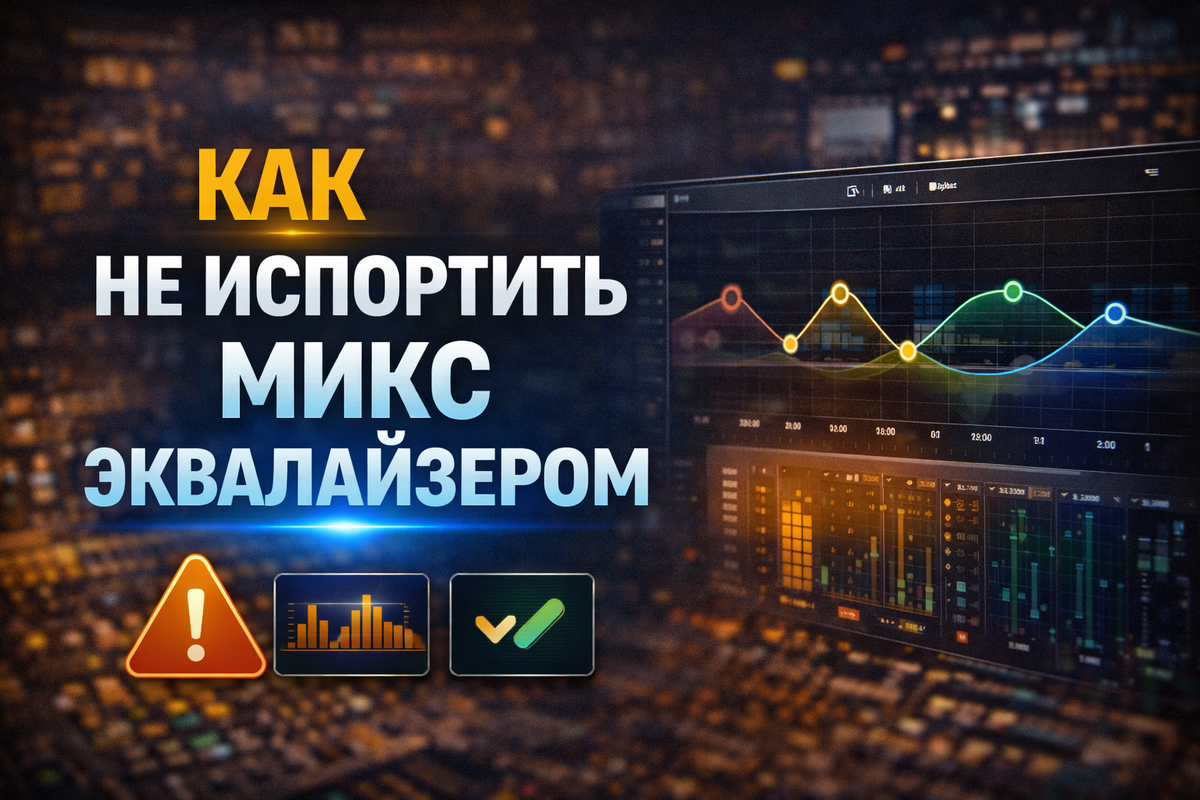 Эквалайзер — самый используемый и самый опасный инструмент в сведении. Им можно быстро навести порядок, а можно так же быстро убить микс, сделав его мутным, тонким или утомительным. Ниже — практичный гайд о том, как использовать EQ осознанно и не ломать звук. Одна из главных ошибок — открывать EQ автоматически на каждом канале. Если звук уже работает в миксе — его не нужно чинить. ❌ Частая логика: «Сейчас чуть подправлю, на всякий случай» ✔ Правильная логика: «Что конкретно мне мешает в этом звуке?» Совет: прежде чем крутить EQ, сформулируй проблему словами. Большинство проблем в миксе — это не нехватка частот, а их переизбыток. Эквалайзер лучше работает как инструмент уборки, а не украшения. Что обычно стоит проверять: Совет: аккуратные вырезы почти всегда дают более чистый результат, чем бусты. В соло легко найти «ужасные» частоты — и так же легко вырезать всё живое. Но микс слушают не в соло, а целиком. Ошибка: Решение: Широкие поднятия быстро делают звук ярче — и так же быстро пер