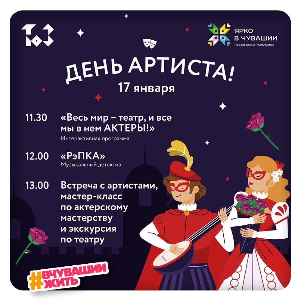 🎭 Служители Мельпомены – это артисты, посвятившие себя театру, кино, цирку и эстраде и отдающие свою любовь и душу зрителям. В этом году 17 января они впервые отметят свой профессиональный праздник. Его учредили в честь дня рождения Константина Сергеевича Станиславского. Присоединимся в эту субботу к их веселью? 👀 📍 Театр юного зрителя 🗓 17 января, 11:30 Отмечать праздник будут и в Художественном музее. Там запланирован киномарафон советских картин про жизнь актеров. Киносеансы пройдут в 11:00, 14:00 и 16:00. 🎬 Подписаться / Предложить новость