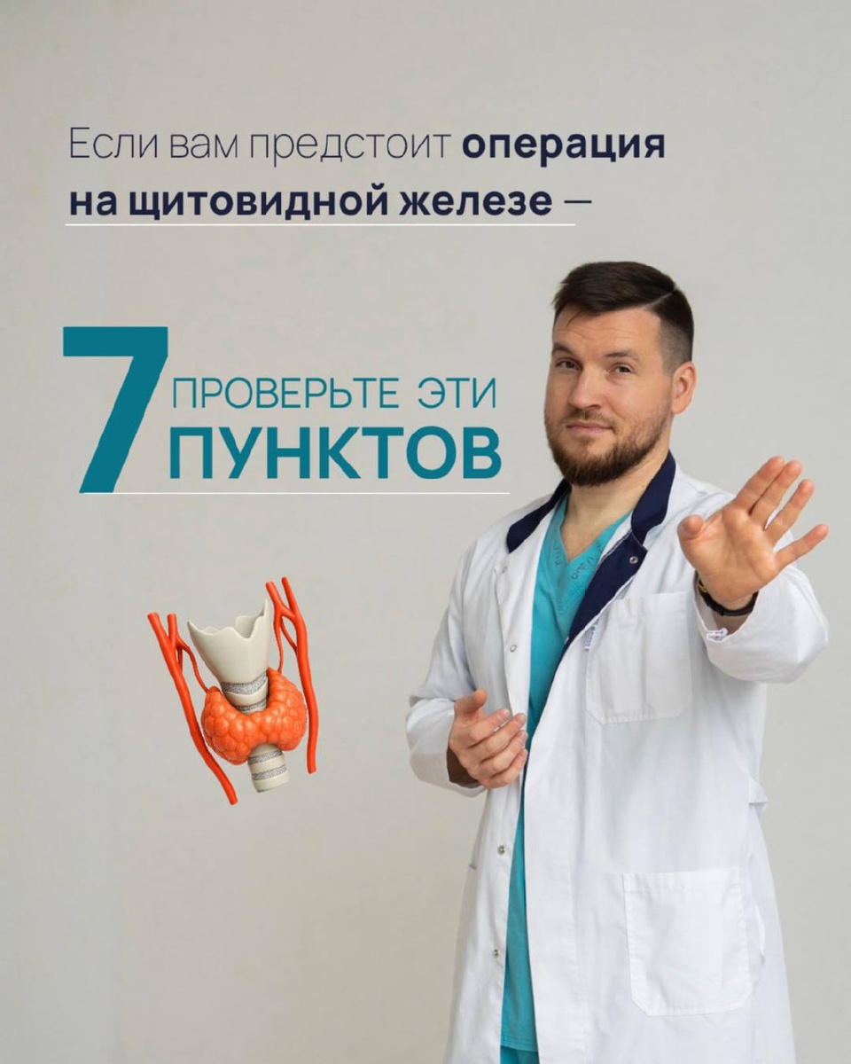 Если вам предстоит операция на щитовидной железе — проверьте эти 7 пунктов 🔵ДИАГНОСТИКА При подозрении на рак ключевую роль играет биопсия узла. Её результат обязан быть описан по международной классификации Bethesda. Только так можно понять, есть ли у вас опухоль, и какая она ⭕️Если в вашем заключении нет классификации Bethesda, невозможно точно сказать, есть ли Рак ЩЖ или нет. В таких случаях диагностику необходимо переделывать по международным стандартам. 🔵КТО ДОЛЖЕН ОПЕРИРОВАТЬ? Операции на щитовидной железе должен выполнять именно хирург-эндокринолог — узкоспециализированный врач. Опыт имеет значение. Хороший ориентир — около 200 операций в год именно на щитовидной железе. ⭕️Не бойтесь спрашивать врача напрямую: Сколько операций на щитовидной железе вы выполняете в год? Это нормальный и правильный вопрос, от которого зависит ваша безопасность. 🔵ИНТРАОПЕРАЦИОННЫЙ НЕЙРОМОНИТОРИНГ Во время операции он позволяет контролировать сохранность гортанного нерва. Это напрямую в