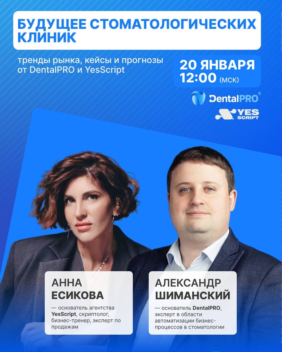 Π½ΠΎΠ»ΠΎΠ³ΠΈΠΈ ΠΏΡΠ΅ΠΎΠ±ΡΠ°ΠΆΠ°ΡΡ ΡΠ°Π±ΠΎΡΡ ΡΡΠΎΠΌΠ°ΡΠΎΠ»ΠΎΠ³ΠΈΠΉ? βοΈ ΠΠ°ΠΊ ΡΡΠΎΡΠΌΠΈΡΠΎΠ²Π°ΡΡ Π΅Π΄ΠΈΠ½ΡΡ ΡΡΡΠ°ΡΠ΅Π³ΠΈΡ ΡΠ°Π·Π²ΠΈΡΠΈΡ? Π ΠΏΡΡΠΌΠΎΠΌ ΡΡΠΈΡΠ΅ Π΄Π»Ρ Π²Π°Ρ Π±ΡΠ΄ΡΡ ΡΠ°Π±ΠΎΡΠ°ΡΡ ΡΠΊΡΠΏΠ΅ΡΡΡ: πΌ ΠΠ»Π΅ΠΊΡΠ°Π½Π΄Ρ Π¨ΠΈΠΌΠ°Π½ΡΠΊΠΈΠΉ β ΡΠΎΠ·Π΄Π°ΡΠ΅Π»Ρ ΠΠΠ‘ DentalPRO, ΡΠΊΡΠΏΠ΅ΡΡ Π² ΠΎΠ±Π»Π°ΡΡΠΈ Π°Π²ΡΠΎΠΌΠ°ΡΠΈΠ·Π°ΡΠΈΠΈ Π±ΠΈΠ·Π½Π΅Ρ-ΠΏΡΠΎΡΠ΅ΡΡΠΎΠ² Π² ΡΡΠΎΠΌΠ°ΡΠΎΠ»ΠΎΠ³ΠΈΠΈ. πΌ ΠΠ½Π½Π° ΠΡΠΈΠΊΠΎΠ²Π° β ΠΎΡΠ½ΠΎΠ²Π°ΡΠ΅Π»Ρ Π°Π³Π΅Π½ΡΡΡΠ²Π° YesScript, ΡΠΊΡΠΈΠΏΡΠΎΠ»ΠΎΠ³, Π±ΠΈΠ·Π½Π΅Ρ-ΡΡΠ΅Π½Π΅Ρ, ΡΠΊΡΠΏΠ΅ΡΡ ΠΏΠΎ ΠΏΡΠΎΠ΄Π°ΠΆΠ°ΠΌ. π 20 ΡΠ½Π²Π°ΡΡ β Π²ΡΠΎΡΠ½ΠΈΠΊ β² 12:00 (ΠΠ‘Π) βοΈβπ₯ Π£ΡΠΏΠ΅ΠΉΡΠ΅ Π·Π°ΡΠ΅Π³ΠΈΡΡΡΠΈΡΠΎΠ²Π°ΡΡΡΡ, ΡΡΠΎΠ±Ρ Π·Π°Π΄Π°ΡΡ ΡΠΊΡΠΏΠ΅ΡΡΠ°ΠΌ ΠΈΠ½ΡΠ΅ΡΠ΅ΡΡΡΡΠΈΠ΅ Π²Π°Ρ Π²ΠΎΠΏΡΠΎΡΡ #ΠΠ΅Π±ΠΈΠ½Π°ΡΡ