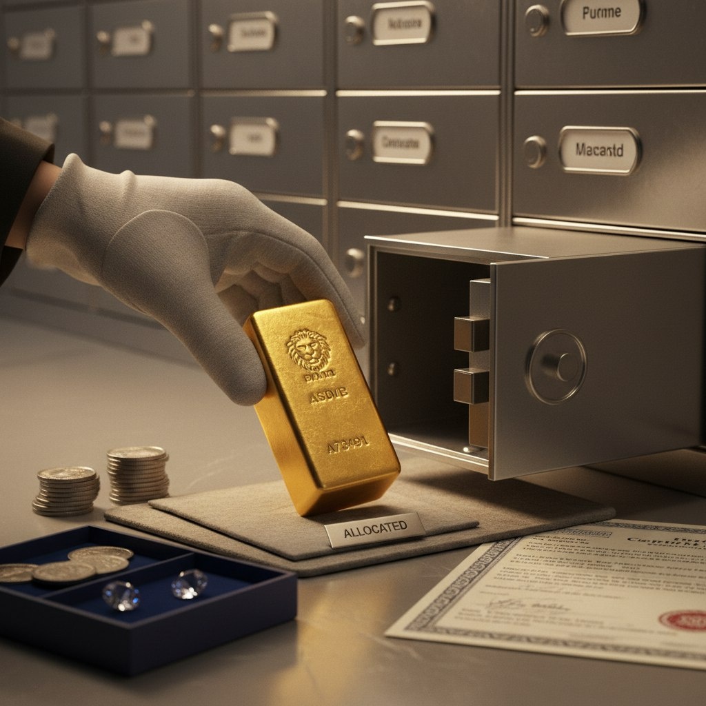 – Allocated (выделенное хранение): конкретные физические слитки закреплены за владельцем, указаны серийные номера, владелец имеет прямое право на эти слитки. Это дороже, ведь тарифы за хранение выше, но обеспечивает юридическую гарантию физического владения.