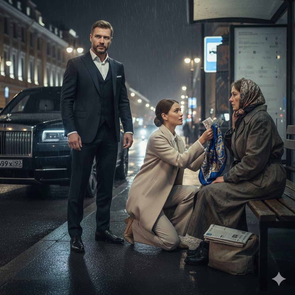 Дверь закрылась с глухим, дорогим звуком. Внедорожник бесшумно тронулся с места, оставив Марту одну на пустой остановке под проливным дождем. В её руке всё еще была зажата визитка, которую женщина так и не взяла.