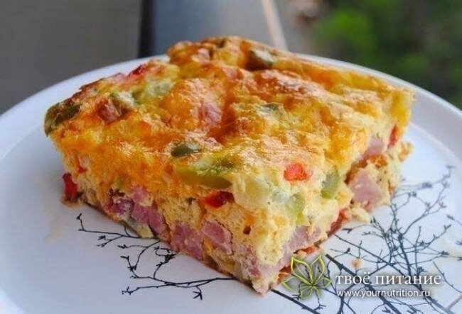 Переливаем смесь в слегка смазанную растительным маслом небольшую форму для запекания (секрет толстенького омлета прост: большое количество яиц в небольшой форме :)).