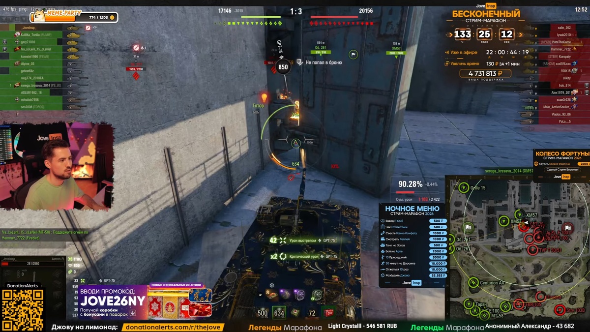 На данный момент идет 3 бесконечных стрима: • Jove — 22 дня в эфире, собрано: 4 731 813💸 • C1yMba — 13 дней в эфире, собрано: собрано: 2 594 611💸 • TaSamaya — 2 дня в эфире, собрано: собрано: 141 609💸