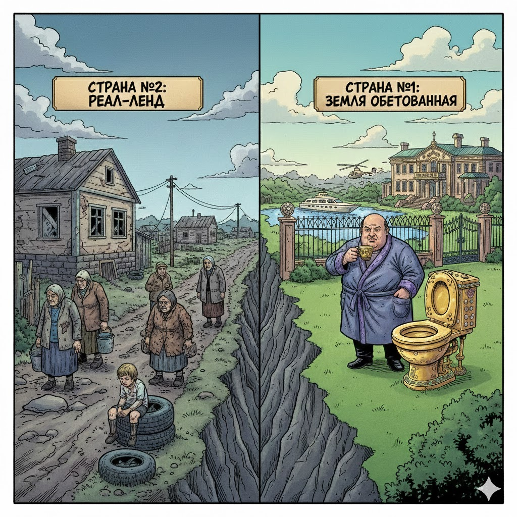 Золотой унитаз на фоне пустеющей деревни — это не признак силы «их» системы. Это — симптом ее глубочайшей болезни, ее морального банкротства. Это крик о помощи системы, которая больше не знает, как удержать власть, кроме как через демонстрацию чудовищного, вызывающего неравенства.
