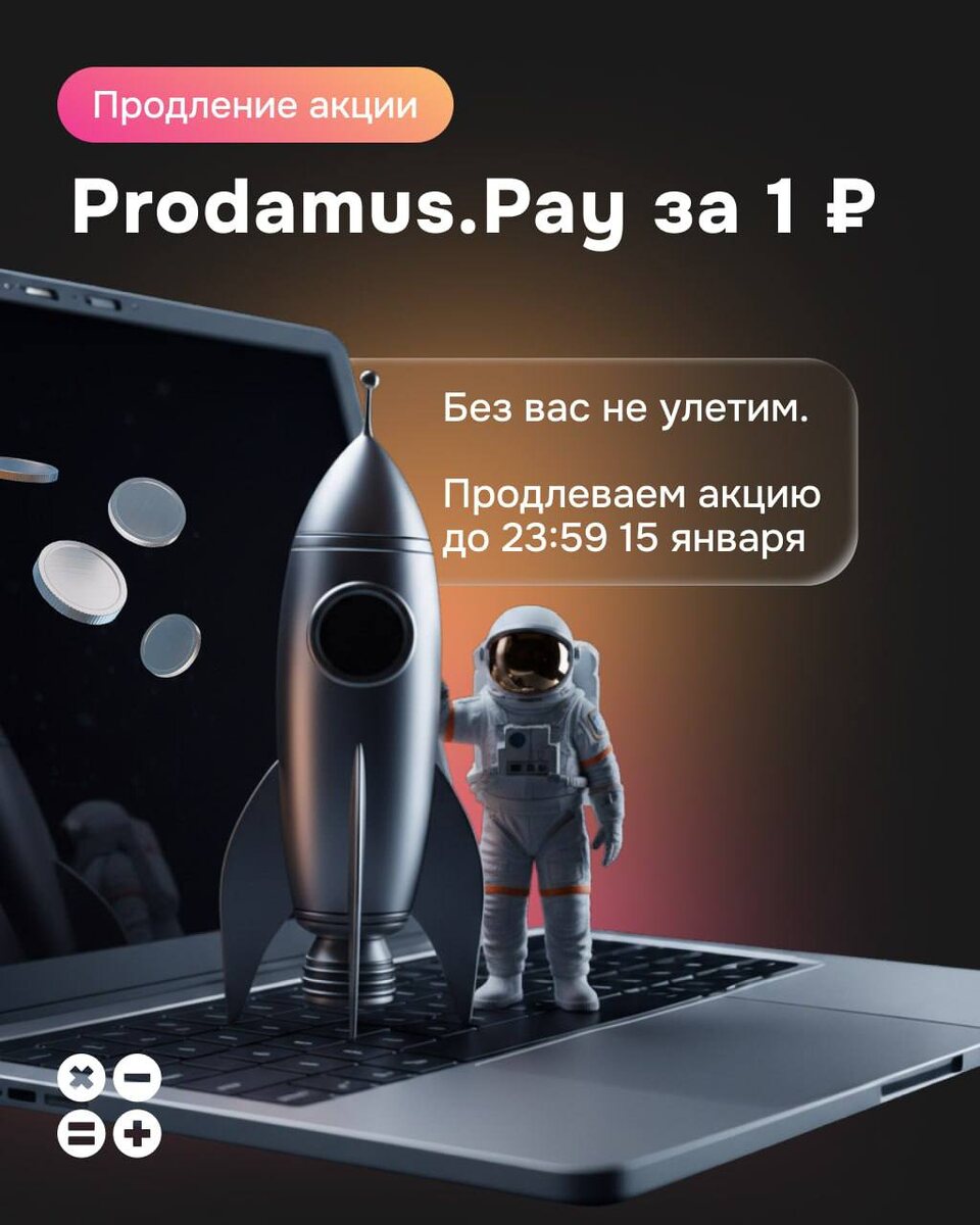 Поток желающих не стихает, поэтому решено продлить акцию ещё на 1 день. Всех, кто заполнил анкеты сегодня ночью берут на борт 🚀 🔥 Подключиться к Prodamus за 1 ₽ можно до 23:59 мск 15 января! Что вы получите после подключения: — Платёжный модуль, который принимает оплаты клиентов со всего мира 16 способами, даже если у вас нет сайта. Например, Prodamus позволяет оформить кредит, взять рассрочку или оплатить частями. — Платёжный виджет. Клиент нажимает на сайте «Купить» — и перед ним появляется окно, где остаётся выбрать удобный способ оплаты. — Автоматизированные рассрочки с вероятностью одобрения до 89% — в том числе и для самозанятых. Оформление договора происходит между клиентом и банком — вы просто получаете деньги. — Мягкий переход. Если вы пользуетесь другим платёжным решением, где размер комиссии меньше, то при переходе в Prodamus рассмотрит возможность сохранить его. Напомню о выгодах и условиях. Никаких «пробных периодов» и ограничений — вы получаете мощный инструмен