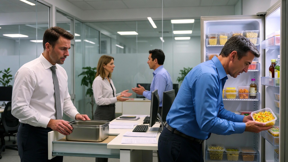 Третья кража стала системой. Каждый вторник и четверг, как по расписанию, мой ланч-бокс опустошался. Я менял полки — она находила. Я писал угрожающие стикеры — она срывала их со смехом. Я принес замок-контейнер — на следующий день нашел его в мусорке со сломанной защелкой.