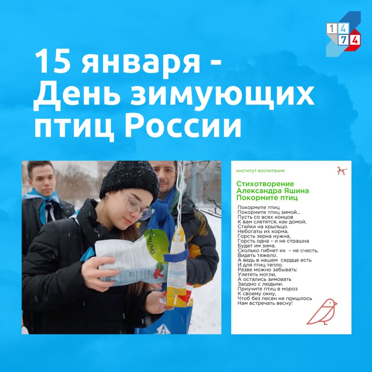 ! Сегодня, 15 января — День зимующих птиц России. Его история началась со стихотворения Александра Яшина «Покормите птиц», которое вдохновило писателя Евгения Носова на добрые дела. Со временем его инициатива превратилась во Всероссийскую акцию. ❄️ Зима — тяжёлое время для птиц: главная угроза — не холод, а голод. Горсть семян или кусочек несолёного сала могут спасти им жизнь. Давайте поможем пернатым и подарим им немного тепла! Вместе с детьми можно сделать кормушку — это простой способ научить их заботе и ответственности ❤️ 💙 #Школа1474 теперь и в MAX | #ДОНМ #ШколыКолледжиМосквы