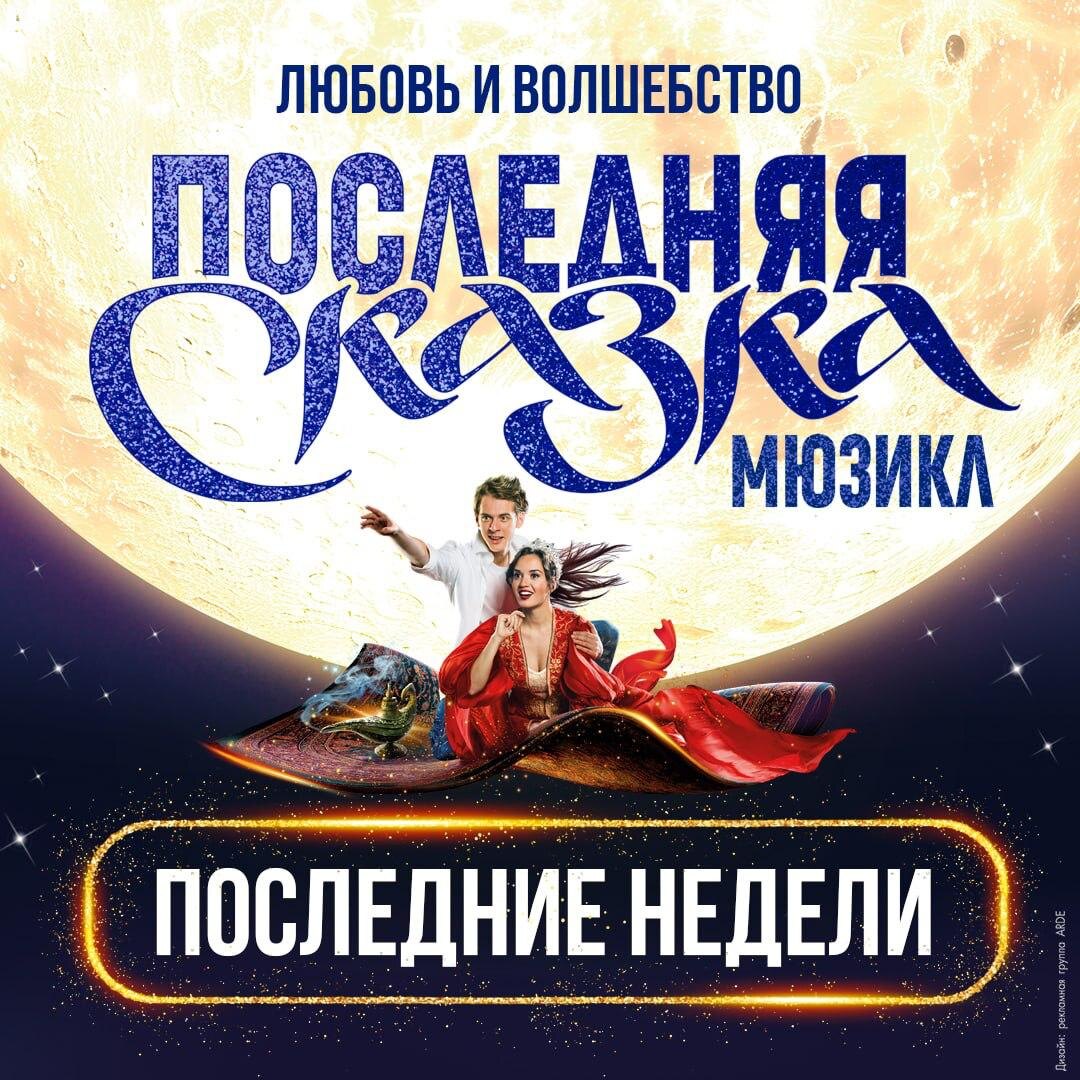 🎭 9 марта в Московском дворце молодёжи пройдут два заключительных показа мюзикла «Последняя сказка». У тебя осталось всего несколько недель, чтобы побывать в столице сказочного Востока, рассмотреть мистический караван и увидеть парящий над сценой ковёр-самолёт 🧞♂️ Если ты всё ещё не видел «Последнюю сказку», то скорее покупай билет, ведь скоро даже самый лучший Джинн не сможет перенести тебя в настоящую сказку! 👀 Кстати, билет можно оплатить Пушкинской картой, сумма которой была пополнена первого января ✍️ Анна Лемешева, 2 курс ФЖ 🎨 Бродвей Москва ⚪ Подписывайся на RGGU.LIVE #РГГУ #СтудентРГГУ #реальноеволшебство