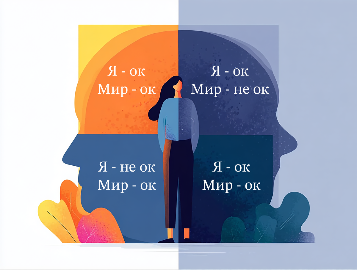 В психологии есть простая, почти детская формула, которая объясняет чуть ли не половину человеческих драм: как я вижу себя и как я вижу мир. Всего четыре комбинации, из которых вырастают любовь, войны, неврозы и сценарии жизни. Давайте рассмотрим их в теории и, конечно, же на известных нам персонажах. «Я ОК — Мир ОК» Это позиция психологической зрелости.