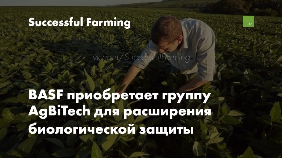 Компания BASF, мировой лидер в аграрных технологиях, объявила о покупке группы AgBiTech, специализирующейся на биологическом контроле