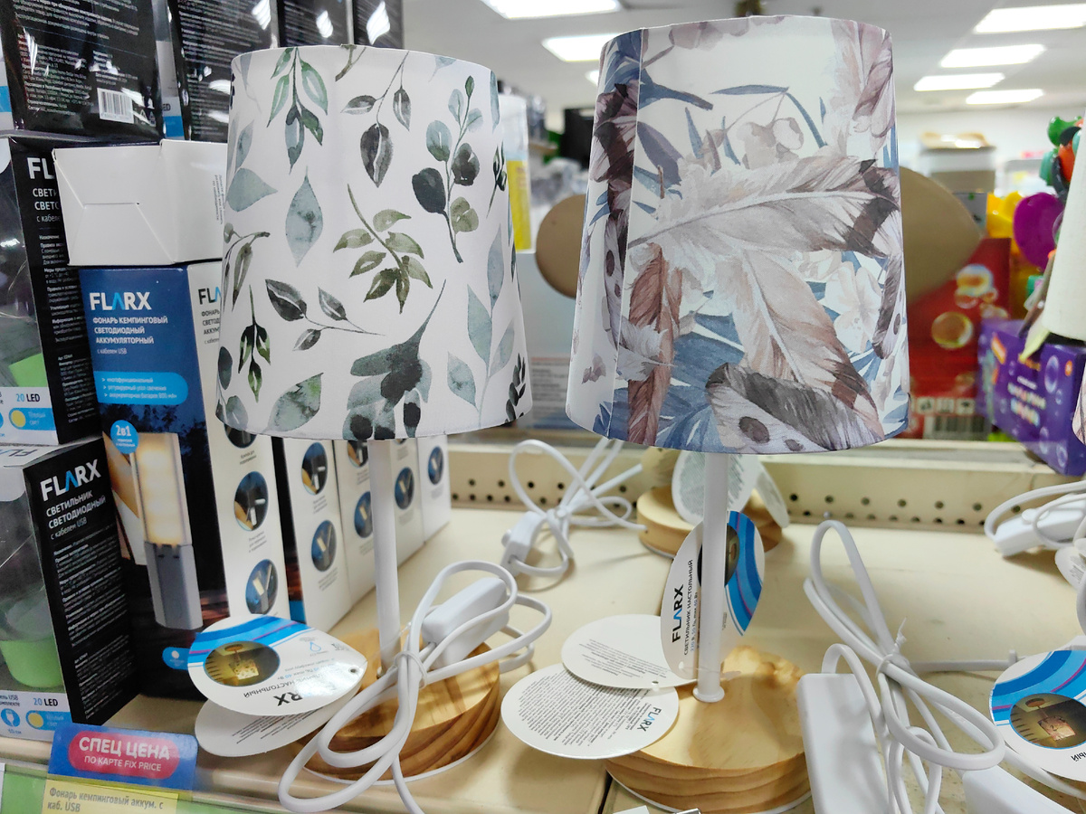 В Фикс прайс опять новинки, выставили настольные лампы, абажур небольшой, основа белая, с цветным принтом. Это могут быть листья или перышки с травинками. Меня же больше заинтересовала лампа, у которой принт похож на крафтовую бумагу, чуть мятую. Стойка и шнур белые, а абажур такой, светло-коричневый. Я и шла за этой лампой, но у нас нет почему-то, придется походить по разным Fix price, поискать.