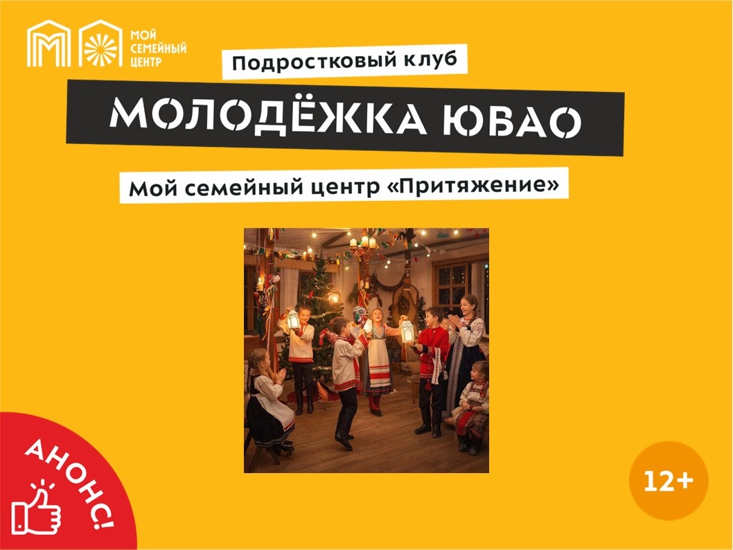 Семейный центр «Притяжение», филиал «Рязанский» приглашает семей с детьми старше 12 лет, состоящих на сопровождении окунуться в волшебную атмосферу старинного зимнего праздника! Участников ожидают народные игры, забавные конкурсы на ловкость и смекалку, а также шуточные гадания и добрые предсказания на год. Отличный повод принять участие в народных забавах и просто весело провести время! Мероприятие направлено на приобщение к традициям предков. Дата: 16 января Время: 16:00 Адрес: г. Москва, Волжский бульвар, д. 11 Информация по телефону: +7 (499) 173-54-70