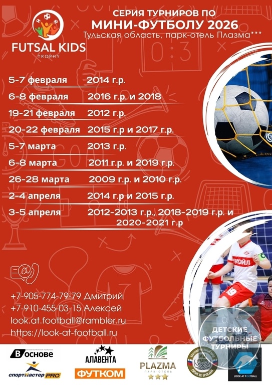 ! Futsal Kids Trophy 2026 - Парк отель Plazma (Тульская область) - Размещение с душем и туалетом - Команды из городов с которыми редко сыграете - Трансляции матчей с комментатором - Победитель каждого возраста получает бесплатное участие на итоговом турнире в Беларуси - 5-6 игр для каждой команды - Подарки от партнеров турнира - Тренер - бесплатно не зависимо от кол-ва делегации - 5 разовое питание Положение/ Подробности / цены / список команд личным сообщением или звоните кому удобнее. +7 (903) 960-37-99 Алексей +7 (905) 774-79-79 Дмитрий +7 (925) 737-61-98 Рауф +7 (962) 362-87-14 Михаил -— #ФутбольныйТурнирФевраль2026 #ФутбольныйТурнирМарт2026 #ФутбольныйТурнирАпрель2026 #ФутбольныйТурнирЦентральнаяРоссия2026 #ФутбольныйТурнирТула2026 #ФутбольныйТурнирТула2009гр #ФутбольныйТурнирТула2010гр #ФутбольныйТурнирТула2011гр #ФутбольныйТурнирТула2012гр #ФутбольныйТурнирТула2013гр #ФутбольныйТурнирТула2014гр #ФутбольныйТурнирТула2015гр #ФутбольныйТурнирТула2016гр #ФутбольныйТурнирТула2017
