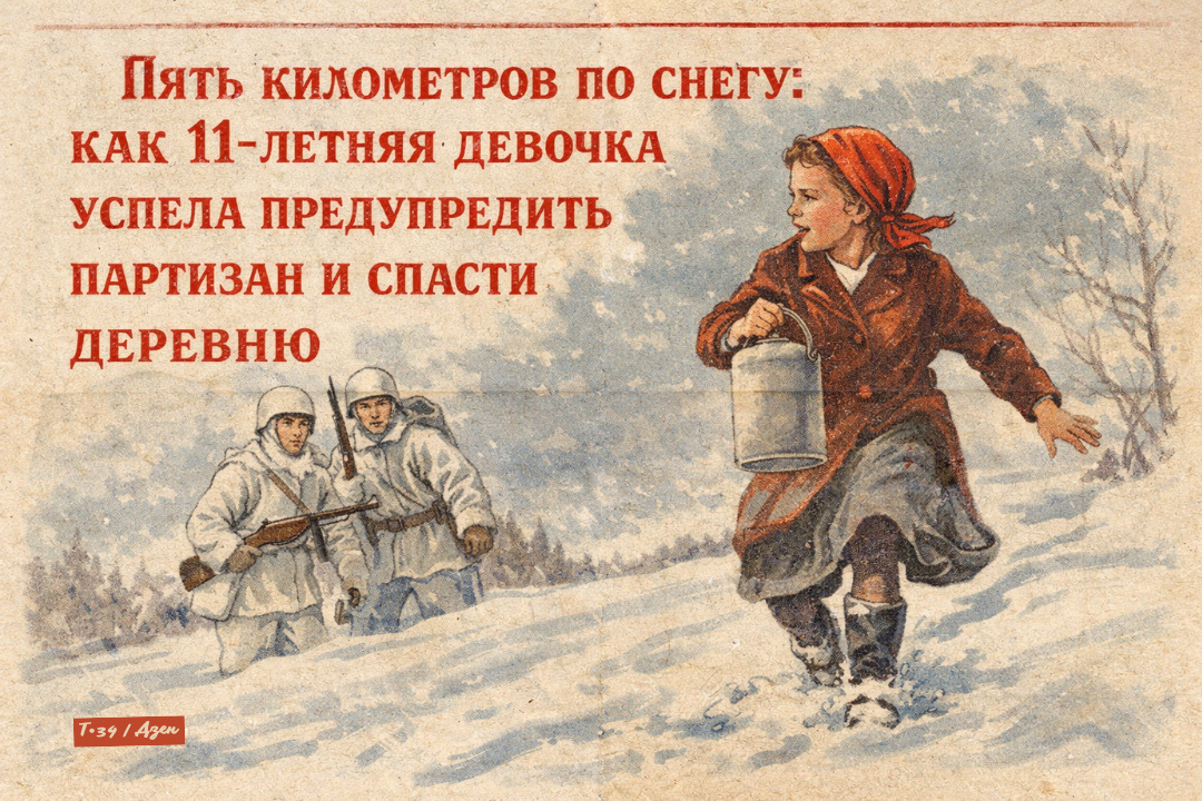 Опасаясь расправы, почти вся семья ушла к партизанам. Дома остались только мама и младшая Броня. Однажды вечером они ждали возвращения отца и братьев из леса, но дом неожиданно окружили немцы. Кто-то донёс, что здесь помогают партизанам. Броня не растерялась. Была зима, стояли глубокие сугробы. Она взяла бидон, будто шла за молоком, и побежала через снега, чтобы предупредить своих. Немецкие солдаты пропустили девочку. Добежав до условленного места у железной дороги, она успела встретить партизан, среди которых были её родные, и рассказала об опасности. Позже мама сказала ей, что своим поступком она спасла не только семью, но, возможно, и всю деревню от карателей.