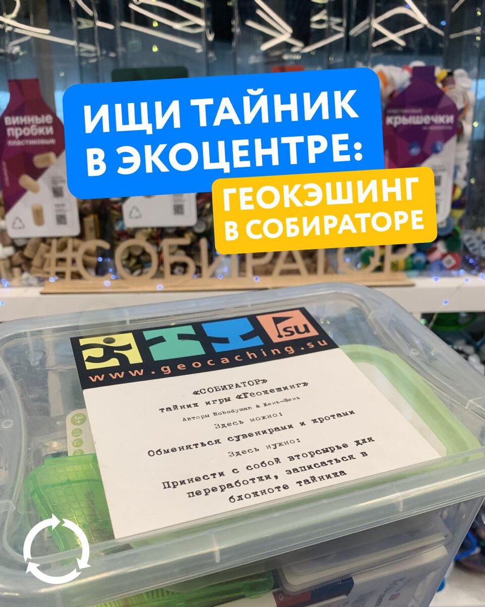 ! Геокэшинг — это туристическая игра, где игроки прячут и ищут тайники с использованием GPS, посещая культурные и природные достопримечательности. «Тайники» — это пластиковые контейнеры с блокнотом (логбуком) и разными сувенирами, которые размещены в красивых или интересных местах. Их можно найти по GPS-координатам. Одни игроки устанавливают координаты «кладов», а другие, следуя им с помощью смартфона или GPS-навигатора, наслаждаются поиском и открывают для себя новые места. В тайнике игроков также ждут небольшие призы. По правилам игры, можно взять любой подарок, заменив его своим, не менее ценным. Например, в Экоцентре на Ярмарке можно купить сувенир и оставить его в тайнике для других игроков. Механика игры проста: чтобы начать, нужно зарегистрироваться на сайте. После регистрации появится карта и список тайников, новичкам рекомендуют начать с ближайших, 1–3 уровней сложности. По координатам находишь ближайший тайник, приходишь в указанное место и начинаешь искать спрятанный кон