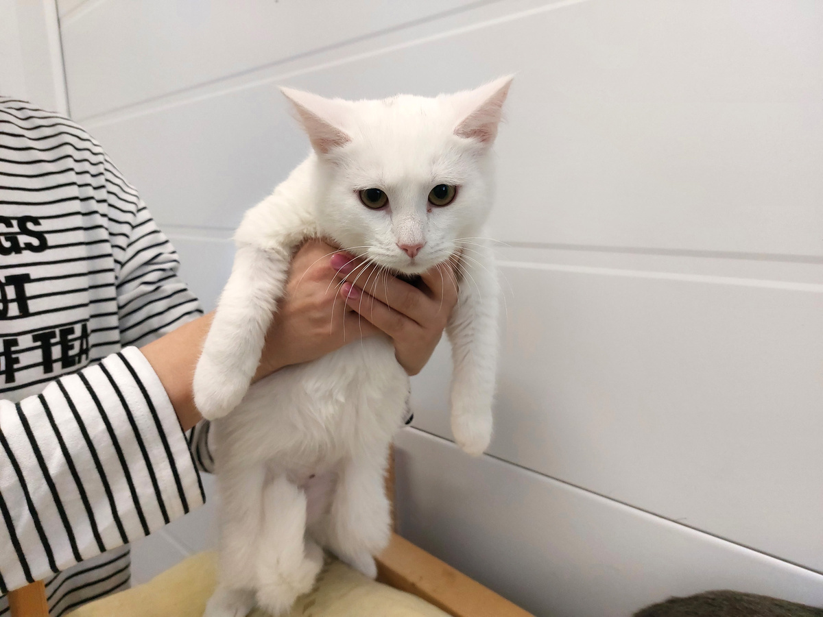 Рафаэль… Имя, словно шепот сладкого предвкушения, навеянное нежным вкусом конфеты «Рафаэлло». Белый, как кокосовая стружка, он, кажется, и сам соткан из воздушной сладости. Но пока этот маленький «бриллиант» прячет свои ласковые грани под маской испуга. В его больших, полных тревоги глазах – отражение незнакомого мира. Он сжался в комочек белоснежного меха, боясь пошевелиться, привлечь к себе внимание. Каждый звук, каждое движение заставляют его вздрагивать, и лишь тихий вздох облегчения вырывается, когда опасность минует. Но мы верим, что это лишь временная оболочка. Под слоем пугающего его мира скрывается мягкий и любящий кот, готовый дарить свою нежность и преданность. Он обязательно успокоится, освоится и раскроет свой истинный, конфетный характер. Представьте, как он будет мурлыкать у вас на коленях, ласково тереться о ноги и игриво гоняться за солнечными зайчиками. Рафаэль обязательно станет настоящим членом семьи, приносящим радость и уют в ваш дом. Такой бриллиант не должен дол