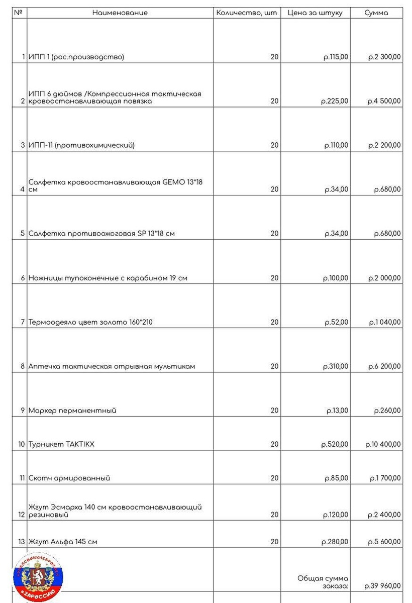 Продолжаем выполнять нашу очень важную заявку на 20 тактических аптечек для штурмовиков 🙏 https://t.me/ekaterinburg_pomosch_soldatam/11086 Сейчас у нас с вами задача собрать 39'960 руб. на оплату большей части комплектующих и самих аптечек (подсумков). ♦️ На карте у нас сейчас - 13'826 руб. 📌 Нам осталось собрать - 2️⃣6️⃣1️⃣3️⃣4️⃣ руб. Заказываем в г. Москва у проверенного поставщика. Цены очень низкие. Нам пока весь товар поставили в резерв на несколько дней! Доставку СДЭКом нам делают бесплатно 🙏🫶 *** На фронте медицинская помощь часто задерживается из-за сложных условий боя. Тактическая аптечка позволяет самостоятельно оказать себе первую помощь или помочь товарищу до прибытия медиков. Это увеличивает шансы выжить и избежать серьезных осложнений. Поможем нашим защитникам 🙏❤️🇷🇺 Любую посильную сумму можно перевести на номер карты: 💳 2202208842197205 или по номеру телефона 📞+79827362150 Получатель - Ирина Владимировна Ш. ("Сбербанк") ❤️Спасибо большое вам, дорог