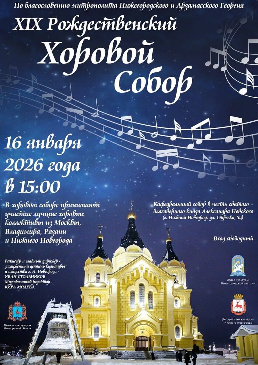 16 января в 15:00 Кафедральный собор в честь святого благоверного князя Александра Невского ул. Стрелка, 3А Вход свободный 😄 Мероприятия Нижний Новгород. Я местный! 📱 Telegram | 📲 MAX