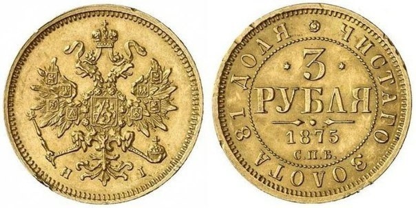 Интересно, что первые 3 золотых рубля появились только в 1869 году и чеканились до самой смерти императора. При этом внешний вид монеты никогда не менялся. Согласно данным Канцелярии Монетного правления, за все время было произведено 1497050 золотых трехрублевок.