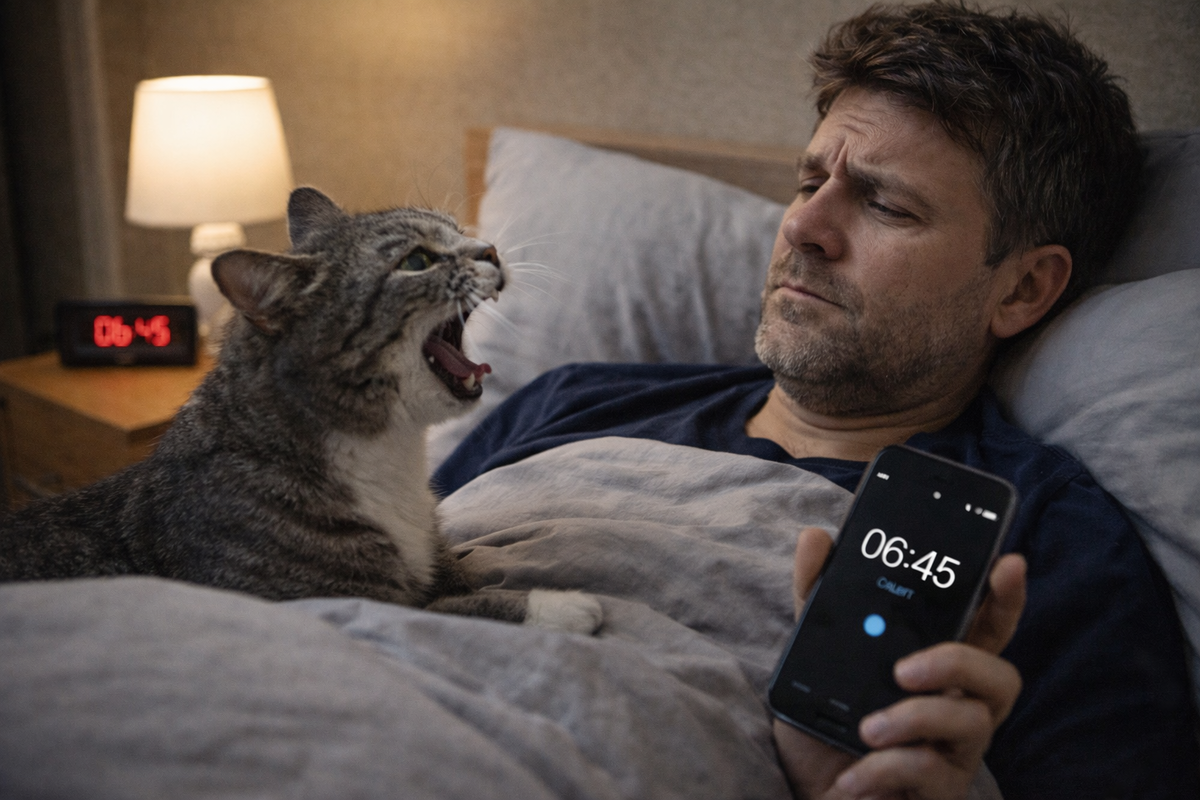 — Пётр, — говорит, — у меня кот стал работать будильником. И не в смысле «иногда разбудил». Он по расписанию. С опережением. Со звуковой сигнализацией. Я живу в тоталитарном режиме.