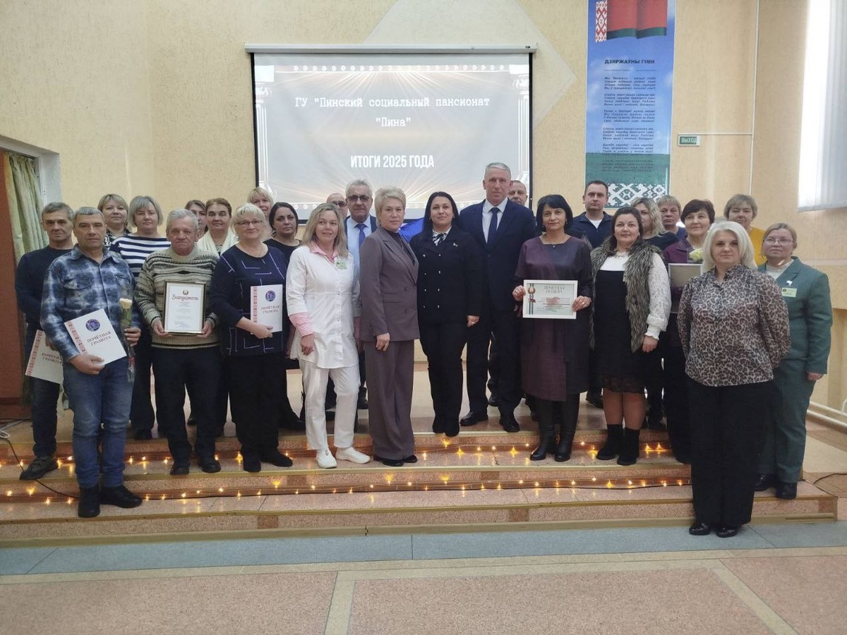 ". ➡️Почетными гостями мероприятия стали в том числе председатель Брестской областной организации Белорусского профессионального союза работников государственных и других учреждений В.В. Дашкевич, а также председатель Пинской городской организации Белорусского профессионального союза работников государственных и других учреждений А.А. Волосевич. ⏩Итоговые отчетные доклады были озвучены заместителями, специалистами, а также директором учреждения Я. С. Иголкой. С докладом о профсоюзной деятельности первичной профсоюзной организации пансионата выступила Н.Н. Леонкова. ✔️В рамках Республиканской акции "От всей души" Вячеслав Дашкевич вручил подарочный сертификат директору пансионата, а также заслуженные награды работникам по случаю профессионального праздника - Дня социального работника. @Пинский Вестник 📱Ютуб 📱ВК 📱ИНСТАГРАМ 📱ОК 📱ФЕЙСБУК 📱ТИК ТОК Прислать новость