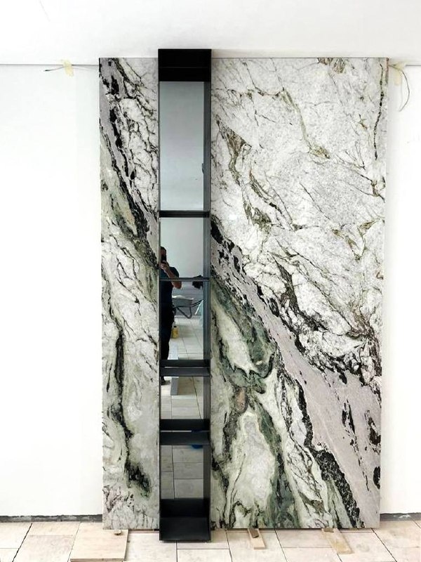 Когда речь идёт об установке панно, стеновых панелей или других настенных элементов, доходящих до потолка, есть важный нюанс, о котором знают не все. Такие изделия чаще всего монтируются на этапе предчистовой отделки. Почему это принципиально важно? Натуральный и кварцевый камень - материал с внушительным весом и габаритами. Для его безопасного заноса и точной установки необходимо заранее предусмотреть монтажные зазоры. Именно они позволяют добиться аккуратного примыкания камня к мебели, стенам и потолку без сколов, напряжений и визуальных дефектов. Это особенно критично для: — панно — облицовки стен и стеновых панелей — столешниц, зажатых между мебелью или стенами с двух сторон На фото — реализованный проект: панно из кварцита Green Irish с интеграцией зеркального стеллажа. Монтаж выполнен именно на предчистовом этапе, с учётом всех технологических зазоров. Наши технологи и менеджеры по продажам в шоурумах знают все тонкости работы с камнем и помогают продумать проект ещё до начала